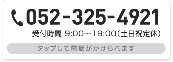 TEL 052-325-4921 info@sanpai-aichi.nagoya 平日 朝9時から夜19時まで ※土日祝定休です。 メールでのご相談・お問い合 わせは、24時間受付中です。 |